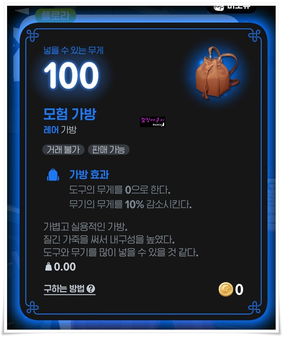 모험가방의 경우에는 도구의 무게를 0으로 만들어 주고 무기의 무게를 10% 감소시켜주는 효과가 있으며 이 가방들은 캐릭터별로 각각 구매가 가능합니다. 본캐로 구매를 하셨어도 부캐로 가시면 다시 구매를 하실 수 있으니 각 캐릭터별로 하트토큰을 넉넉히 구해두셔야 겠네요.