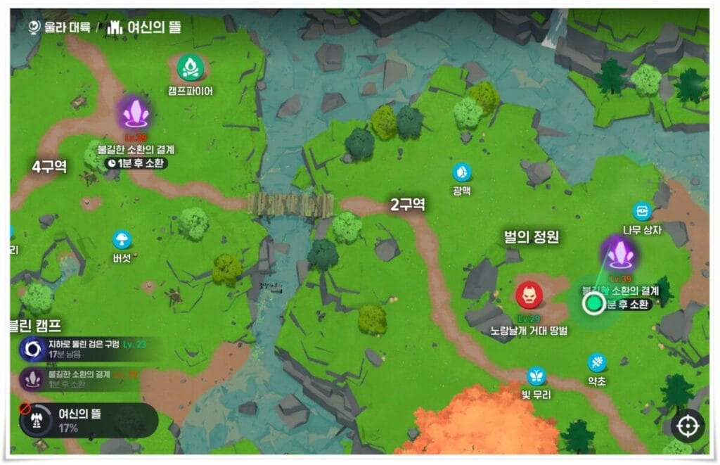 미리 '여신의 뜰'에 가 있으시면 오픈 시간에 2분 후 결계가 소환된다는 안내문구가 뜹니다. 그때 자동가기를 이용해 결계가 열리는 지점으로 가 있으시면 됩니다.