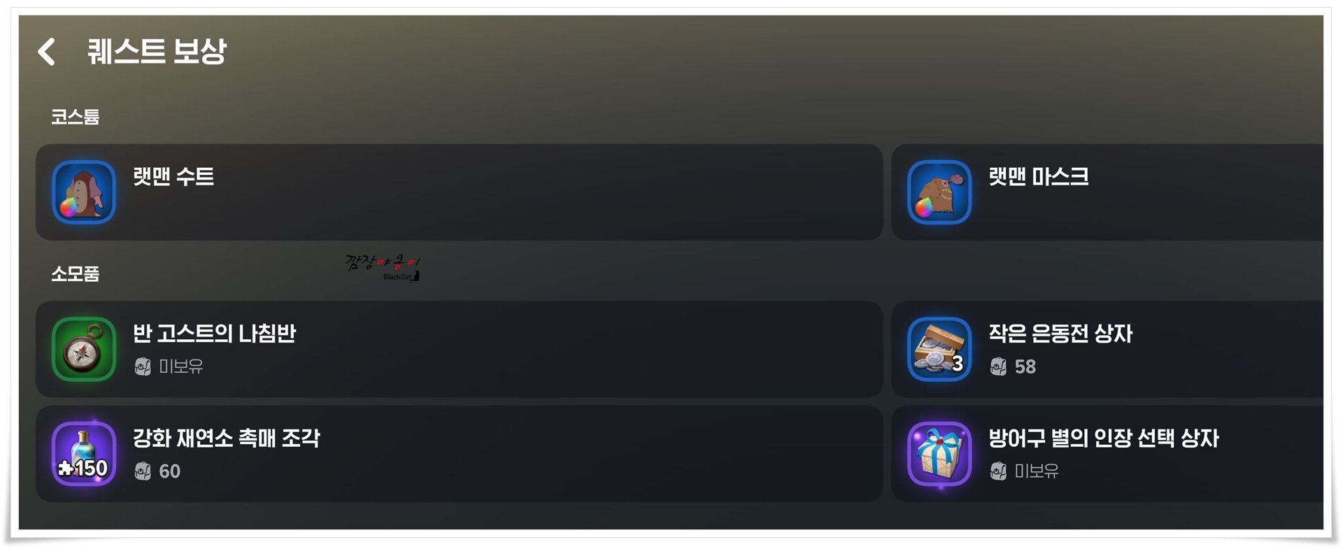 제일 눈에 띄는 아이템은 '방어구 별의 인장 선택 상자'로 보통 랜덤으로 얻어 중복된 부위가 나올 수도 있는데 이 아이템을 이용하면 콕 찝어서 하나의 방어구 부위를 얻을 수 있으니 아껴뒀다 1곳 남았을때 사용하시면 될거 같네요.