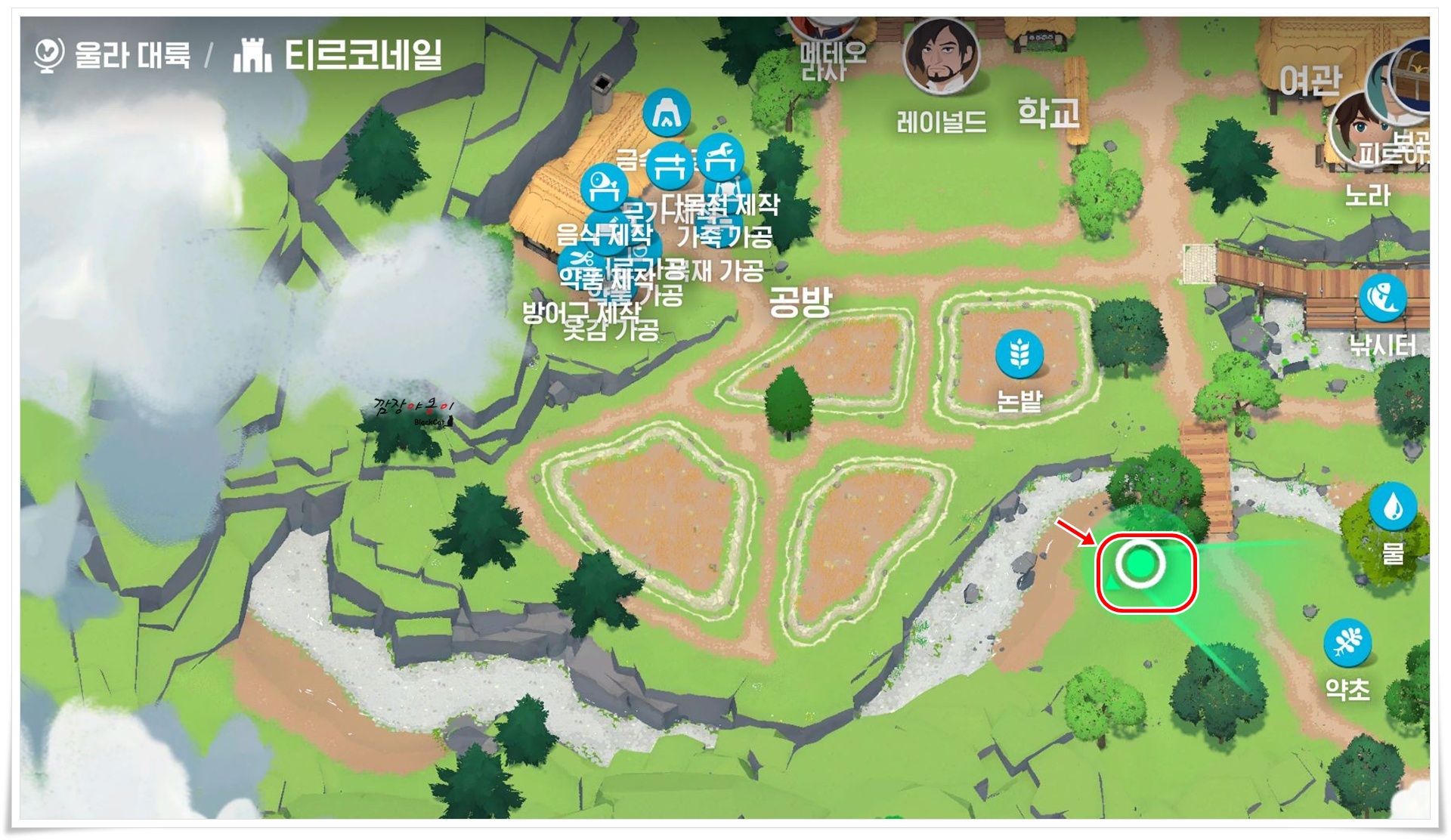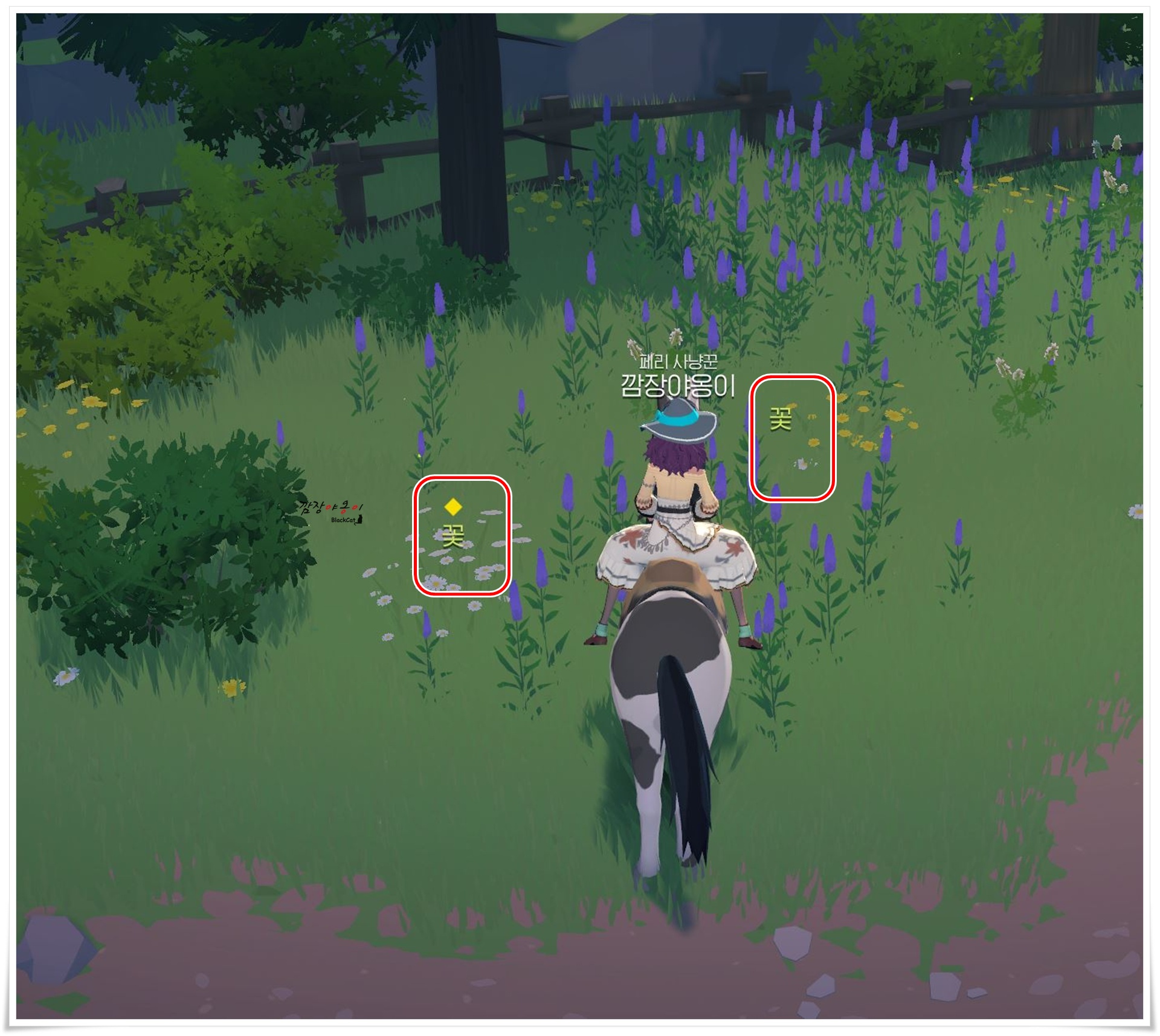 빈병 혹은 물병을 가지고 지도에 나타난 곳을 찾아가시면 역시나 캐릭터와 반응하는 꽃을 찾을 수 있을텐데요.