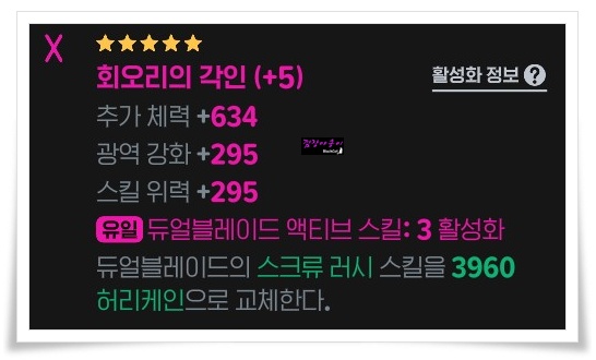파열룬을 사용 할 경우 도적 전용룬 중 하나인 비열한 승부사와 시너지가 좋습니다.