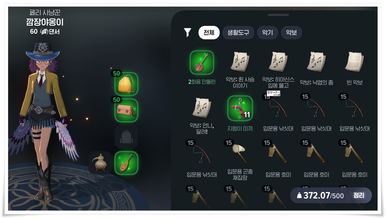 처음엔 가방용량이 넉넉한 줄 알고 그래 게임은 이래야지!! 이랬었는데 조금씩 렙이 올라가면서 가방 차는 속도가 엄청나게 빠르네요.