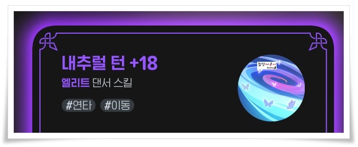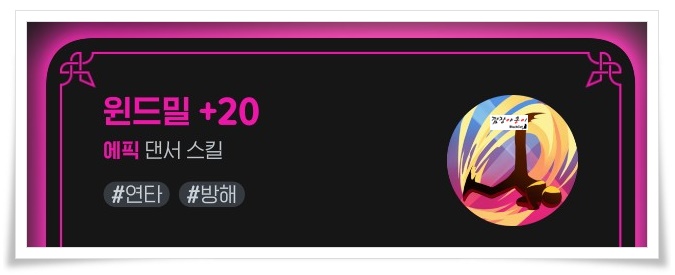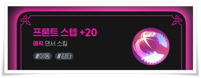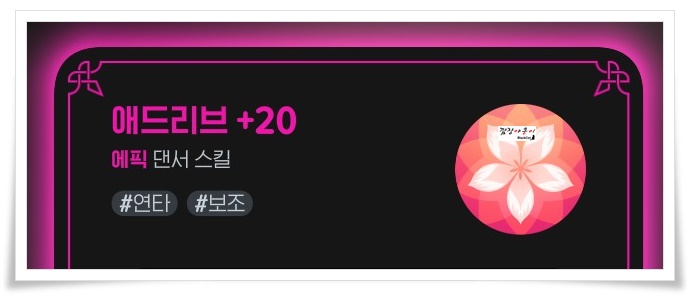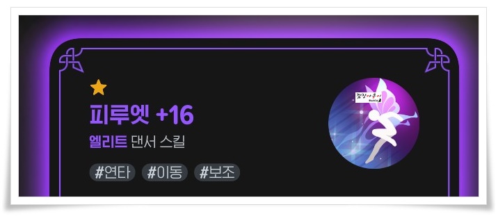 현재 제 댄서의 스킬입니다. 각 스킬들 하단에 보시면 #연타, #강타, #이동, #방해, #보조 등 태그들이 붙어 있는게 보이시죠? 여러분들도 캐릭터에 들어가셔서 전투스킬을 확인해 보시면 해당 캐릭터의 태그를 확인 하실 수 있습니다.