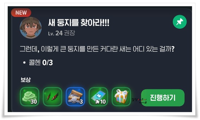 <3개 둥지 찾을 경우 퀘스트 보상>