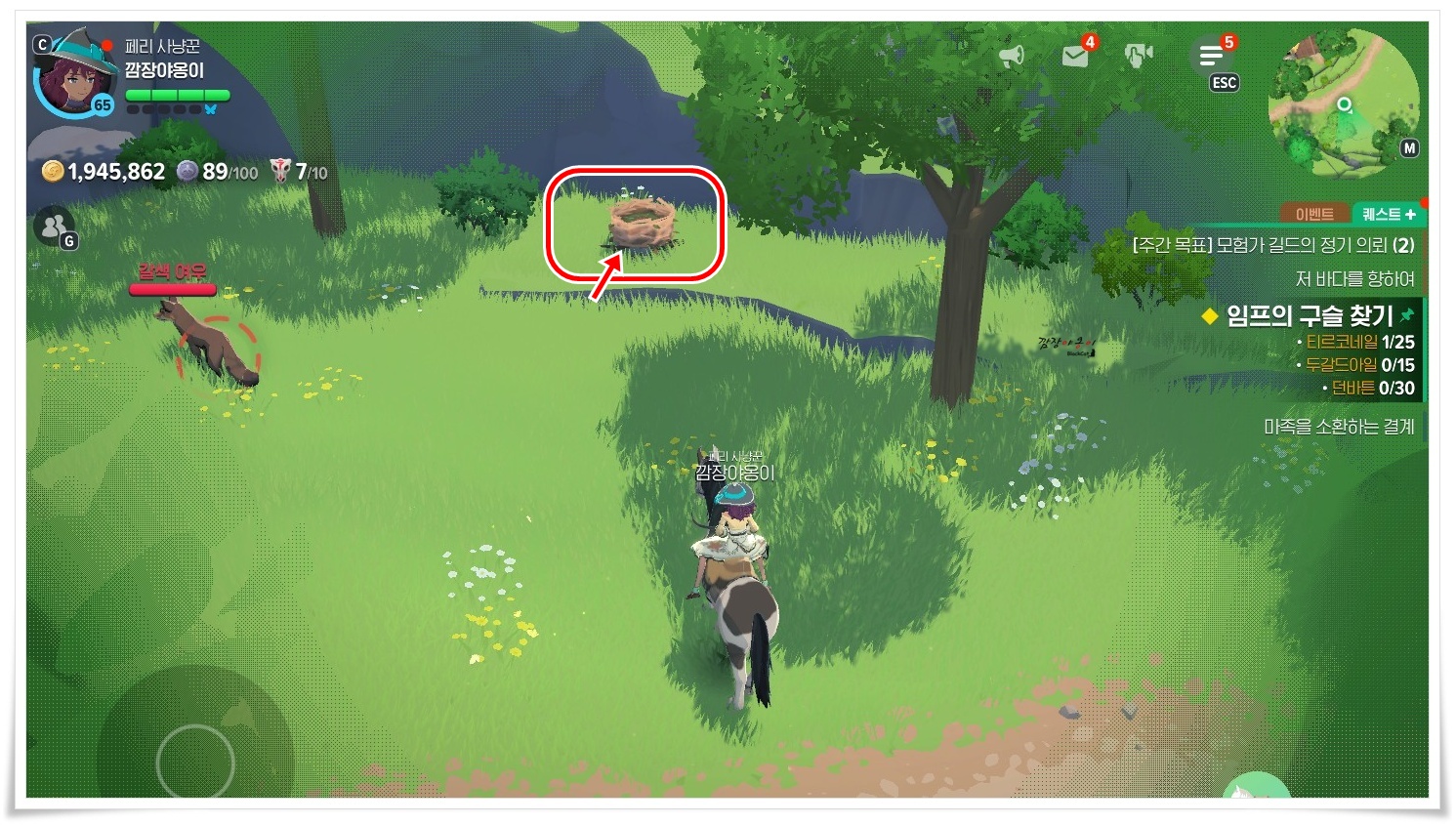 풀밭목장 '새 마니아'에게서 퀘스트를 받아야 합니다. NPC의 위치는 위 지도에 표기해 뒀으니 아직 받지 않으신 분이라면 가셔서 받으시면 됩니다.
