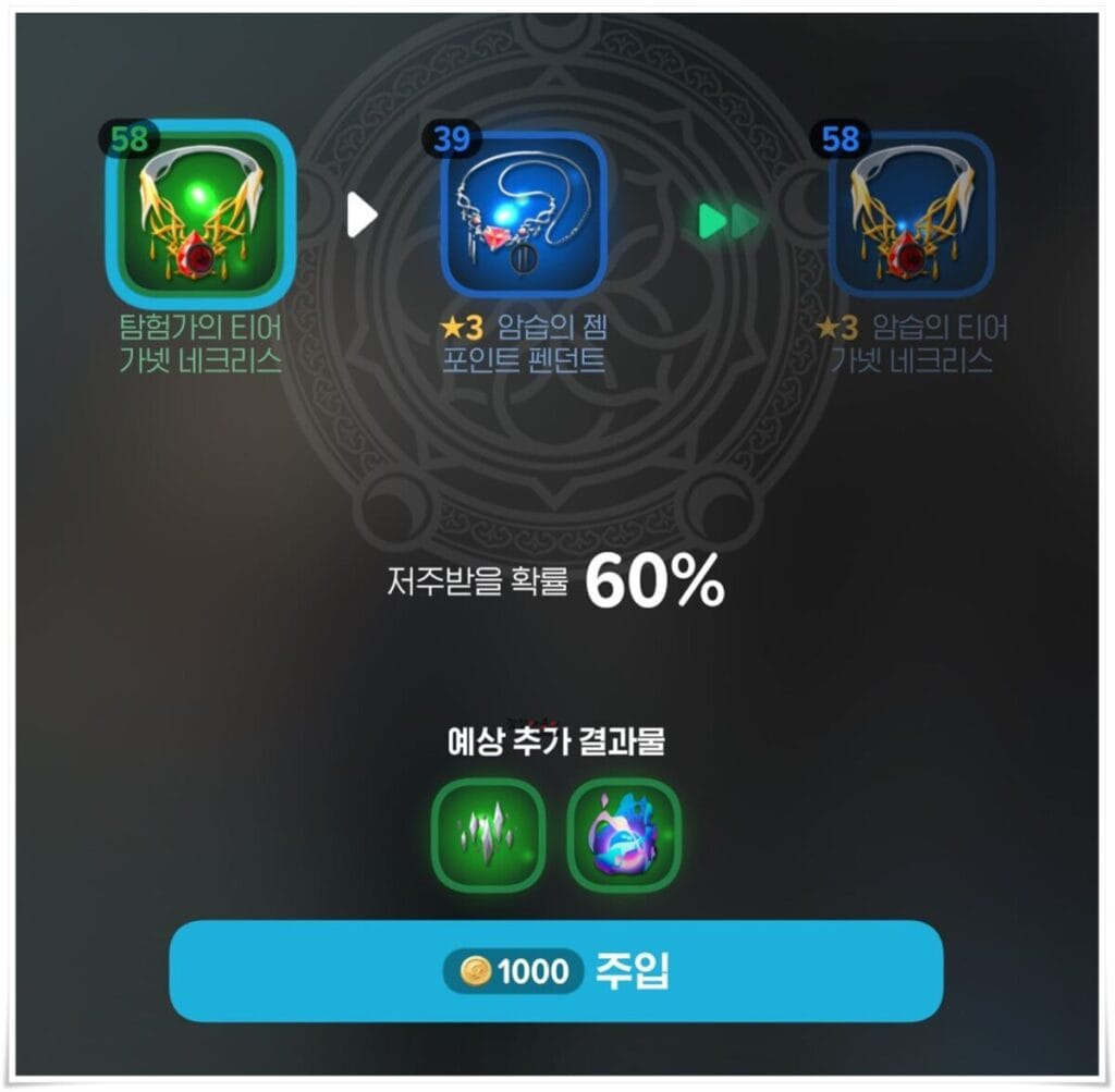 녹템의 더 높은 공격력과 파템의 더 좋은 옵션을 합쳐졌고 목걸이 이름도 두개의 아이템에서 짜집기를 한듯이 합쳐져서 새롭게 만들어 진 것을 확인 할 수 있습니다.