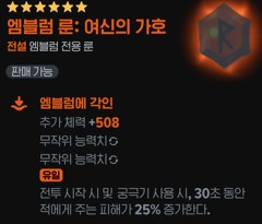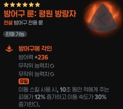 이동 스킬 사용 시, 10초 동안 적에게 주는 피해가 12% 증가하고 이동 속도가 30% 증가한다.