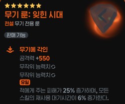 적에게 주는 피해가 25% 증가하며, 모든 스킬의 재사용 대기시간이 6% 증가한다.