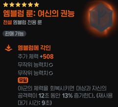 아군의 체력을 회복시키면 15초 동안 적에게 주는 피해가 5% 증가한다. 해당 효과는 최대 3회까지 중첩된다. (재사용 대기 시간: 5초)