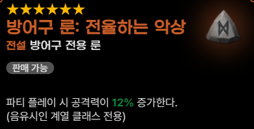 방어구 룬으론 위 7가지를 추천합니다. 전방에 뛰어들어 근접전을 펼치는 캐릭터는 아니다 보니 검은 서약이나 안정도 나름 쏠쏠합니다.
