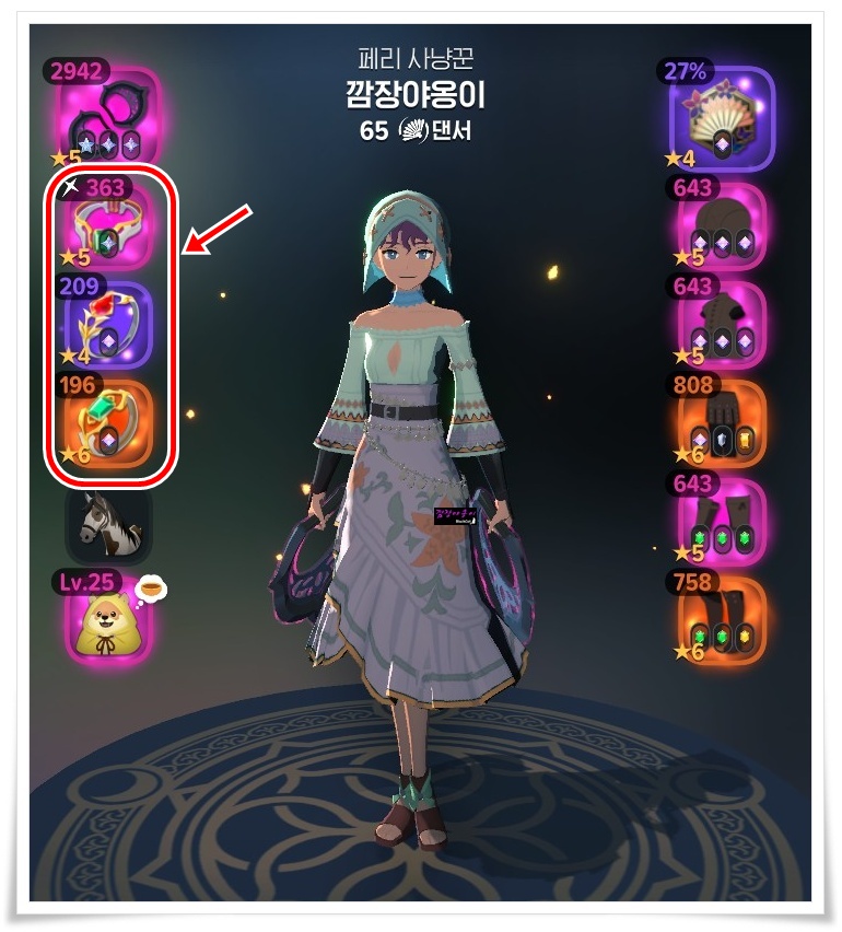 장신구는 캐릭터의 장비창에서 왼쪽 무기 아래 반지/ 목걸이를 칭하고 있습니다. 기본적으로 목걸이 1개와 반지 2개로 총 3개의 장신구로 이루어져 있는데요.