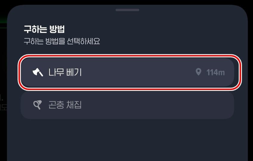 선택한 재료의 '구하는 방법'이 나오면 클릭해보세요.