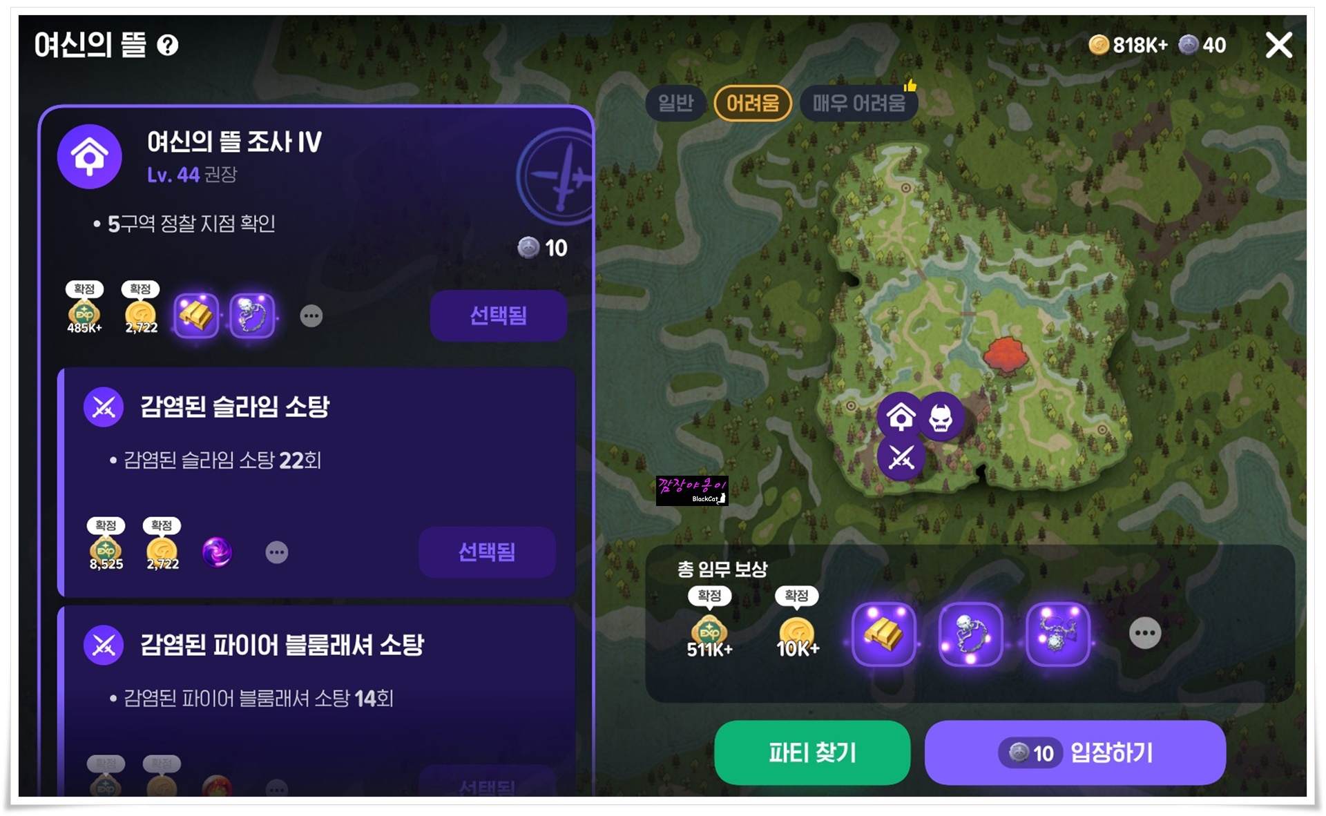 던전 만큼이나 많이 도는 곳이 바로 여신의 뜰입니다. 까마귀가 물어다 준 은동전을 이용해 퀘스트를 받아서 입장을 하실텐데요.