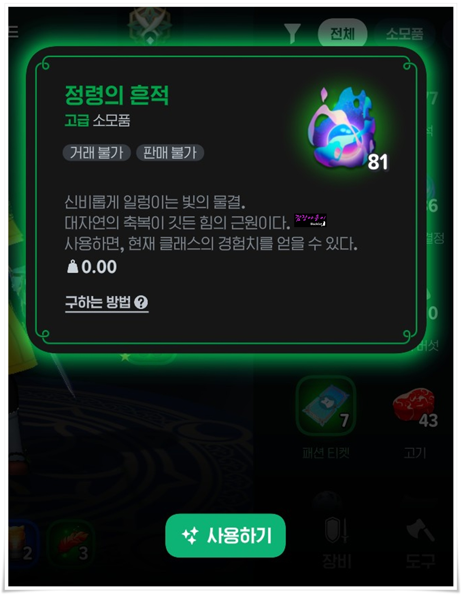 연금술에서 성능주입을 하다 실패했을 경우 대장간을 찾아 저주를 푸는데요. 저주를 풀때 필요한 재료가 바로 정령의 흔적입니다.