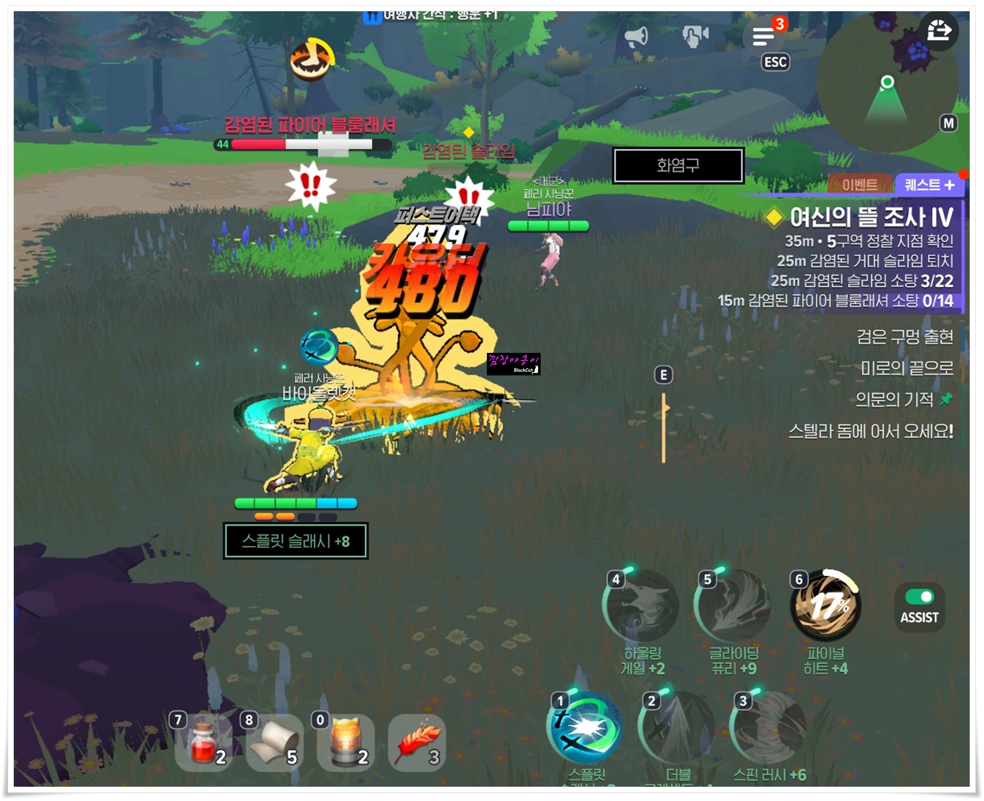 한마리의 몬스터를 처치해 봤는데 소량의 클래스 경험치를 얻는 것을 확인 할 수 있습니다.
