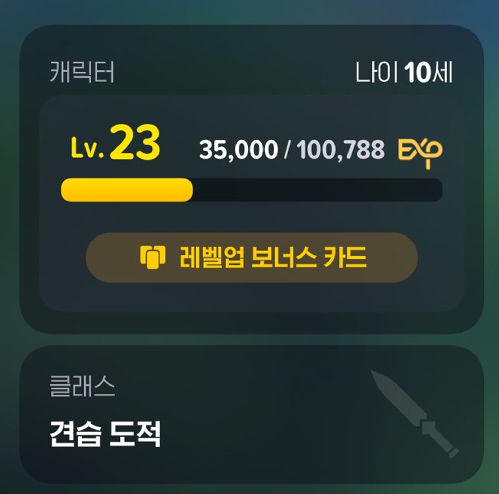 오.. 몰랐는데 오늘 마비노기 모바일 접속해서 이벤트 항목을 보다보니 '도적' 클래스가 새롭게 업데이트 되었네요. 새로운 클래스의 등장으로 현재 (오늘 기준 21일 남음) 도적 클래스 캐릭터를 키우는 성장 이벤트가 진행중이라 겸사겸사 새로운 캐릭터도 키워볼겸 초번에 몰라서 못한 '10살에 곰을 잡은' 이라는 타이틀도 함께 진행을 해봤네요.
