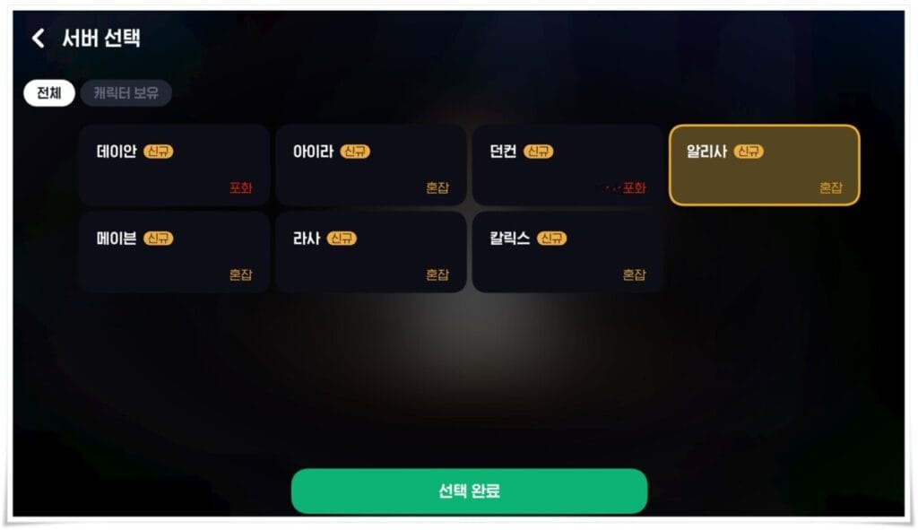 저는 이미 게임 친구가 서버를 정해서 전사 캐릭터를 생성해 둔 상태라 친구따라 서버를 선택했네요. 저의 선택권 따윈 없었습니다. ㅋ
