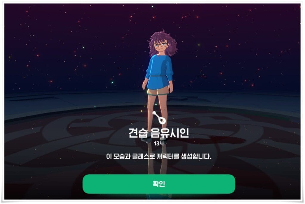 이렇게 해서 탄생한 제 캐릭터의 모습이랍니다. 전 최초 클래스를 음유시인으로 생성을 해봤는데요.