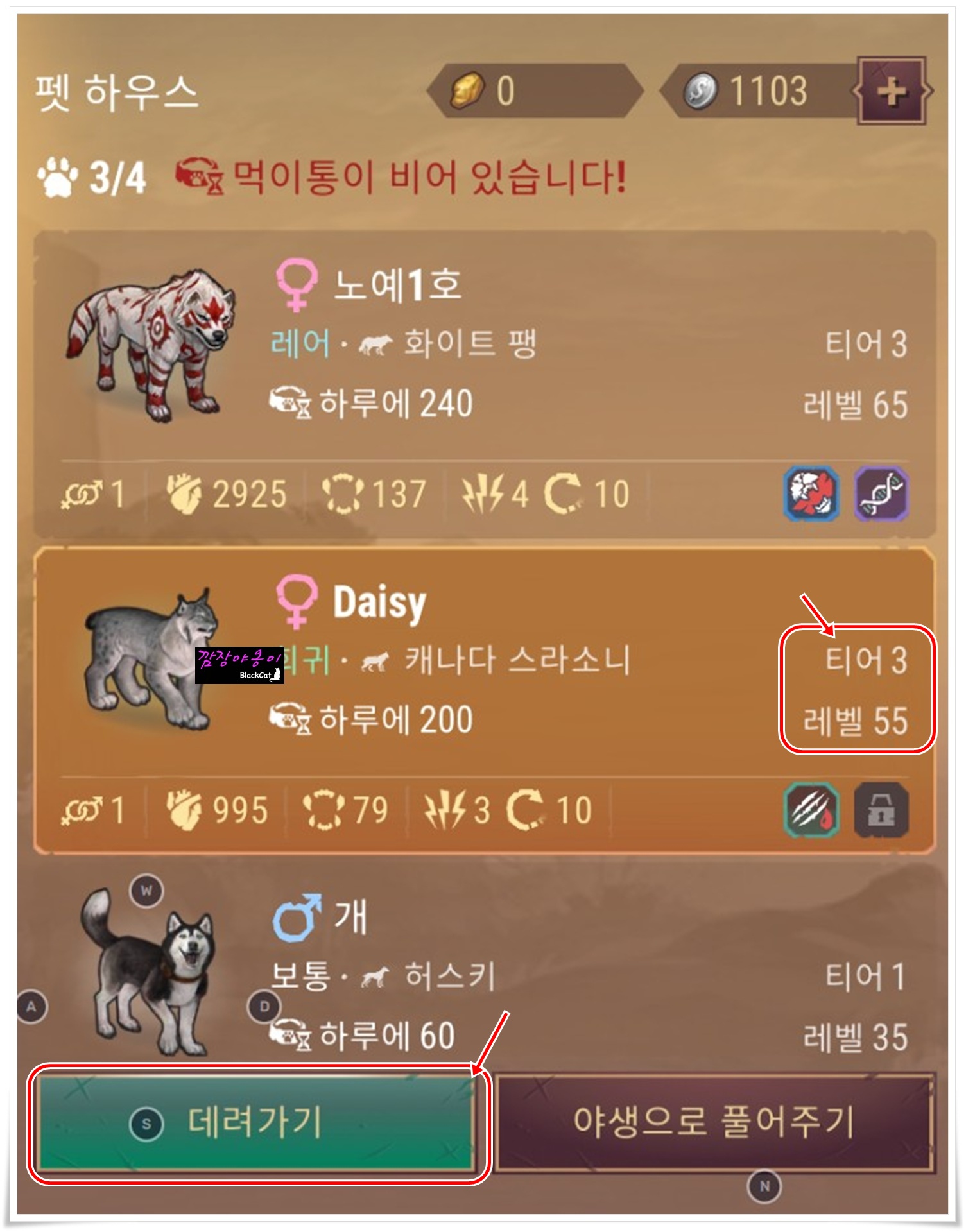 위 두가지 글을 이용하시면 펫하우스 제작 방법과 3티어 동물(스라소니/ 늑대)을 유인하는 방법에 대해 확인 하실 수 있습니다.