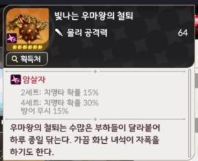 | 암살자 4세트 | 치명타 확률 30% |