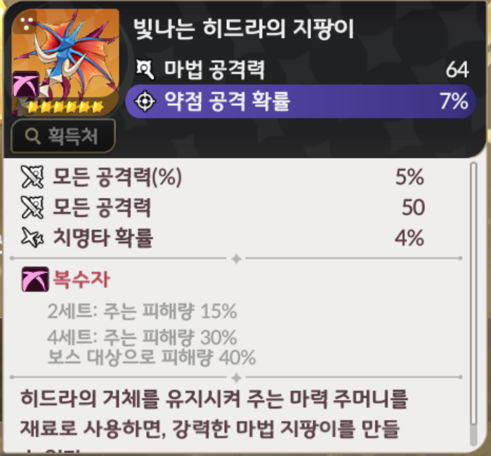 복수자 4세트 | 주는 피해량 30% 보스 대상 피해량 40% |