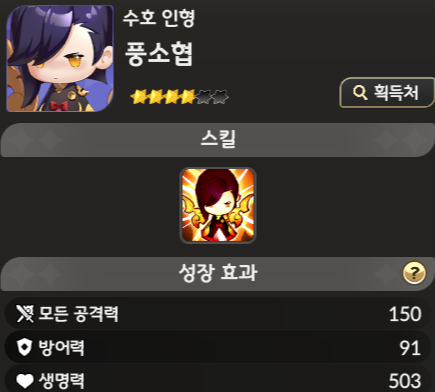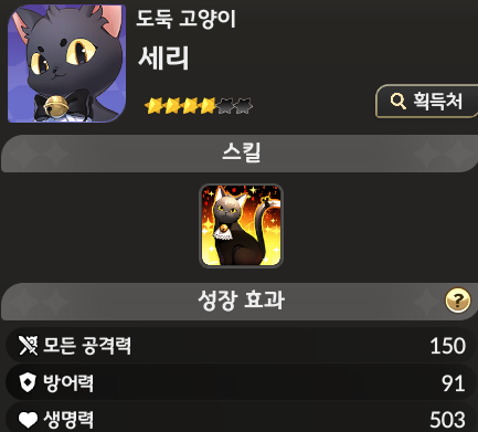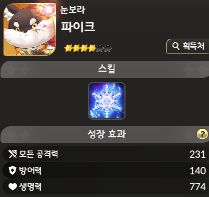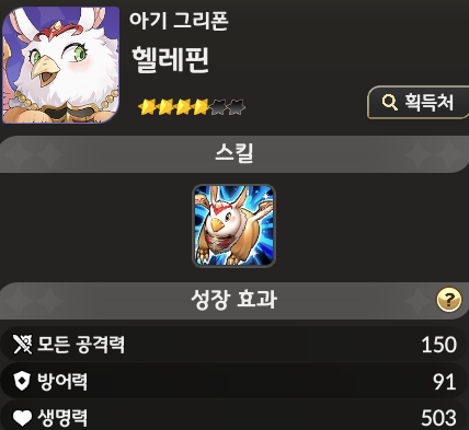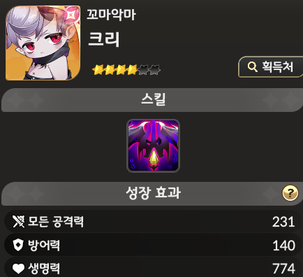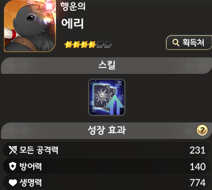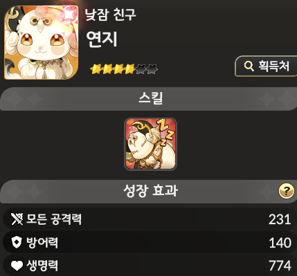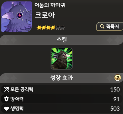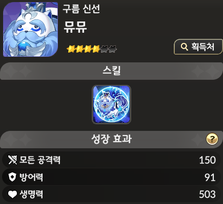 전설 등급치곤 살짝 아쉬울 순 있지만 공격력 버프만으로 충분히 고려해 볼 수 있는 펫입니다.