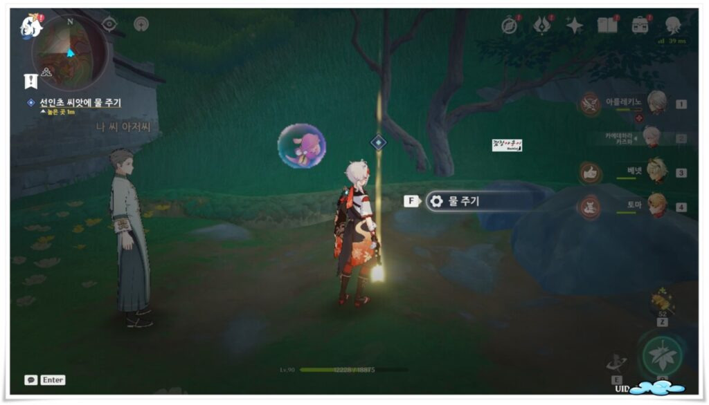 NPC나씨 아저씨를 따라 3년전 죽었다는 약초꾼의 집으로 가서 현련산 동굴속에서 떠온 '선인의 물'을 뿌려주면 퀘스트 완료와 함께 '향군의꿈' 히든업적을 달성 하실 수 있습니다.