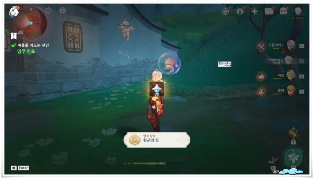 추가로 리월임무 '마을을 떠도는 선인'도 달성 할 수 있습니다.