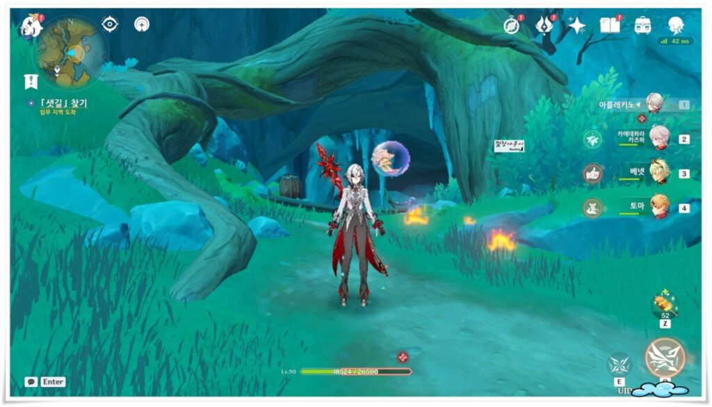 동굴 앞에 보시면 바닥에 원형의 기믹이 있는데 이곳에 서 있으시면 막혀있던 동굴의 입구가 열리게 됩니다. 이제 현련산 동굴 안으로 들어갈 수 있습니다.