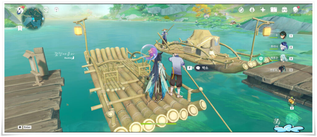 리월의 교영마을 아랫쪽에 있는 작은 나루터로 이동해 줍니다. 이곳에서 박소라는 이름을 가진 NPC와 대화를 진행합니다.