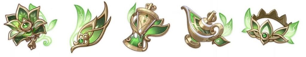 풀 속성을 가지고 있는 요요가 사용하기에 가장 적합한 성유물입니다. 요요가 숲셋을 착용해 주면 파티내 다른 풀속성 캐릭터가 도금셋을 착용 할 수 있다는 이점이 있습니다.