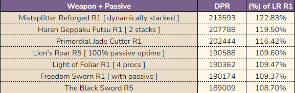 다른 커뮤니티에 올라와 있는 무기별 효율표입니다. 회광이 제일 좋긴 하지만 무기가 없다면 4성 중에선 용포를 주시는 것이 제일 효과가 좋을거 같네요.