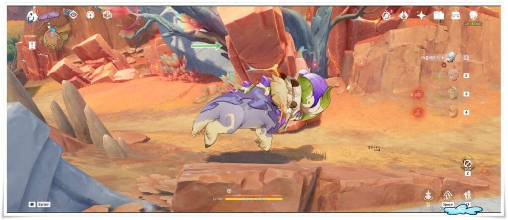 뿔룡이 있는 자리의 문양은 저 몬스터를 잡아야만 이동이 됩니다. 처음에 평소대로 아를레키노로 왔다 속성 때문에 너무 아파서 잠시 후퇴 후 물속성 캐릭터들로 왔더니 쉽게 잡네요.