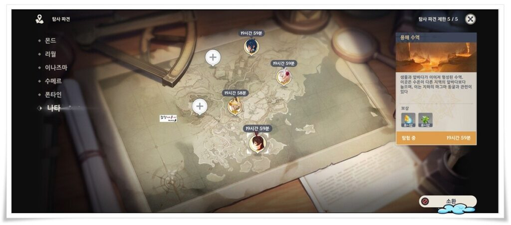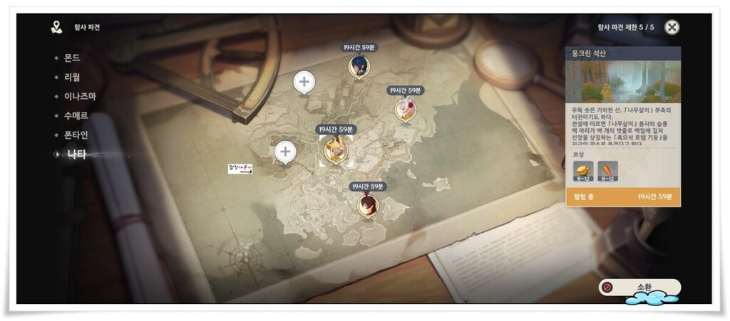 야외에 나가셔서 채집을 하셔도 되고 '탐사 파견'을 통해 획득하셔도 됩니다.