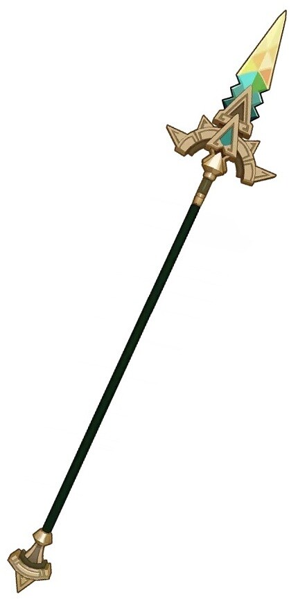 옥석으로 만든 날카로운 창. 햇살 아래에서 은은한 무지갯빛을 뿜어낸다.