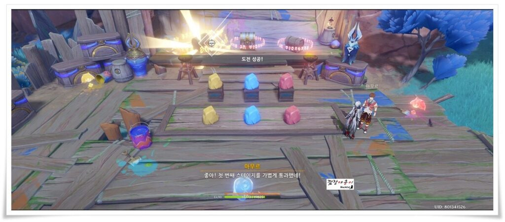 NPC마무르에게 대화를 걸면 '염색 돌 도전'이라는 야바위 같은 게임을 하자고 하는데요.