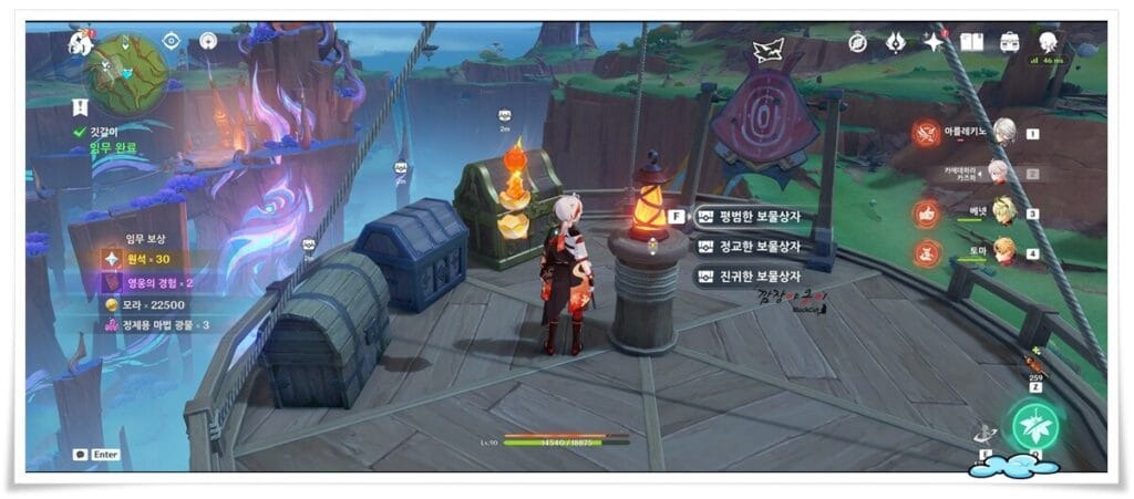 도전까지 모두 성공하고 나면 '평범한 보물상자', '정교한 보물상자', '진귀한 보물상자'를 모두 하나씩 획득하면서 나타 퀘스트는 완료됩니다.