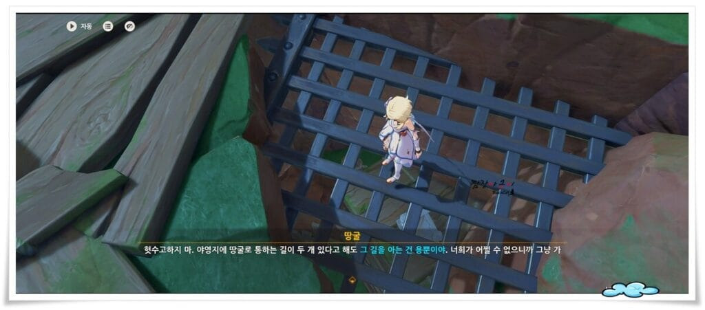 나무발판 위로 올라가시면 앞서 근심 어린 깃룡이 이야기 한 것 처럼 암호를 대야하는데요.