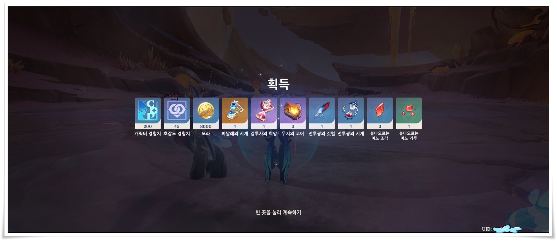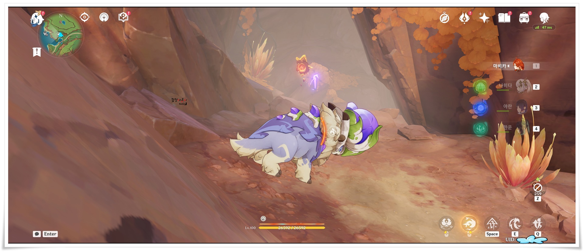 왠지 생긴게 폰타인의 '용암철갑 제왕'과 느낌이 비슷합니다. 불속성을 띄고 있는 몬스터라 푸리나/ 느비예트 팟으로 하니 손쉽게 잡을 수 있었네요.