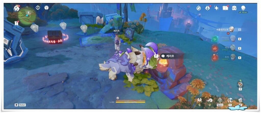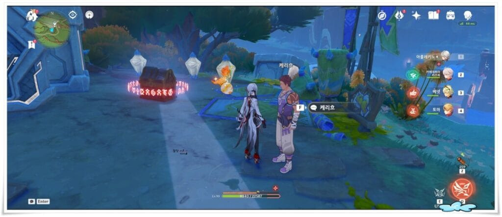 어떻게 해야 보물상자를 먹을 수 있는지 알 수가 없으니 우선 앞을 지키고 있는 NPC케리흐에게 말을 걸어봤는데요.