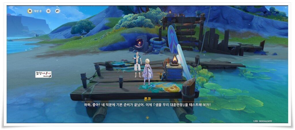 통통 펭귄만 처치하면 끝인 줄 알았는데 그리 쉽게 퀘스트를 끝내주지 않네요. 이제 '샘물 무리 대훈련장' 테스트를 진행한다고 합니다.