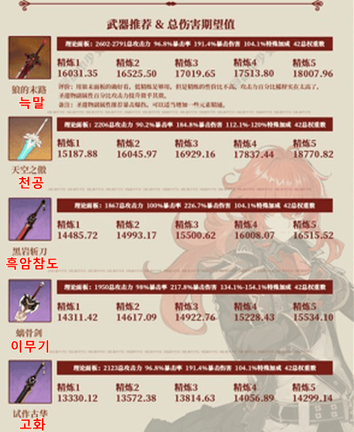 5. 고화 프로토타입/ 4성 90렙 기준 능력치 주 옵션: 기초 공격력 565 부 옵션: 공격력 27.6% |