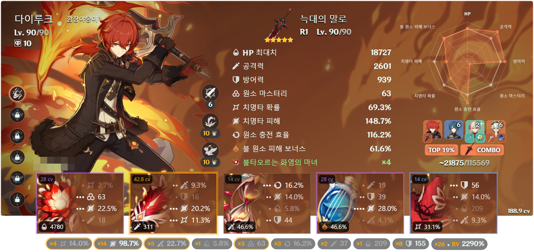 | 치명타 확률/피해, 공격력%, 원소마스터리 | ||