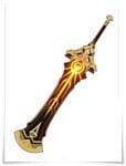 | 재련시 공격력+20/25/30/35/40%. HP가 30% 미만인 적을 명중 시 모든 파티원의 공격력이 40/50/60/70/80% 증가한다. 지속 시간: 12초. 해당 효과는 30초마다 1번 발동한다. 높은 기초공격력과 더불어 부옵션에 공격력이 붙어 딜러인 다이루크에게 알맞은 5성급 무기입니다. 상시 기원에서 얻을 수 있으며 자신 포함 파티원 전체의 공격력이 증가하는 옵션이 있습니다. |