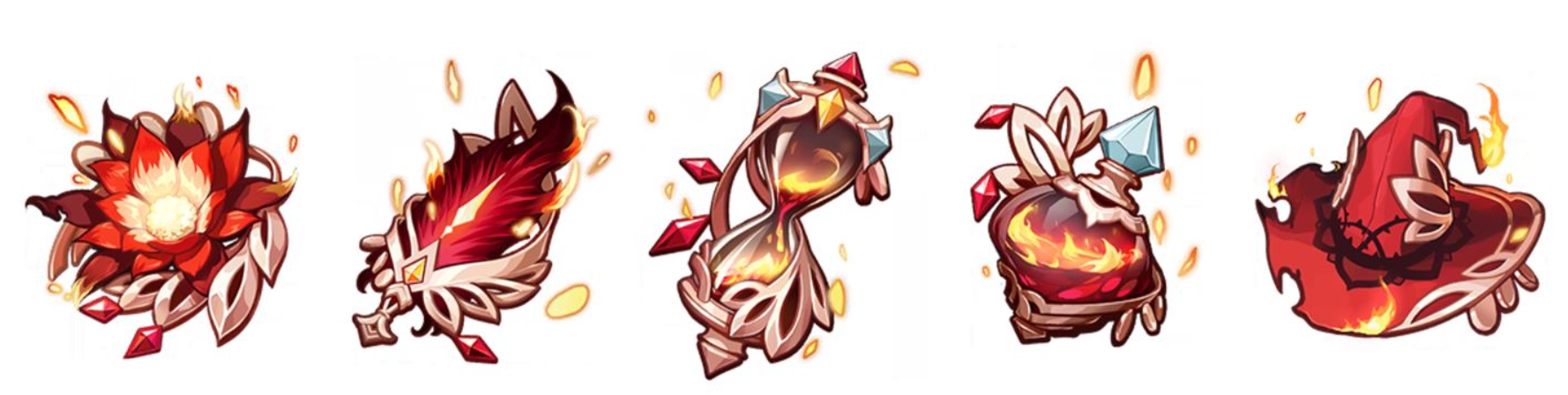 과부화, 연소, 발화 반응으로 적에게 주는 피해가 40% 증가하고 증발, 융해 반응의 보너스 계수가 15% 증가한다. 원소 전투 스킬 발동 후 10초 동안 2세트의 효과가 50% 증가한다.