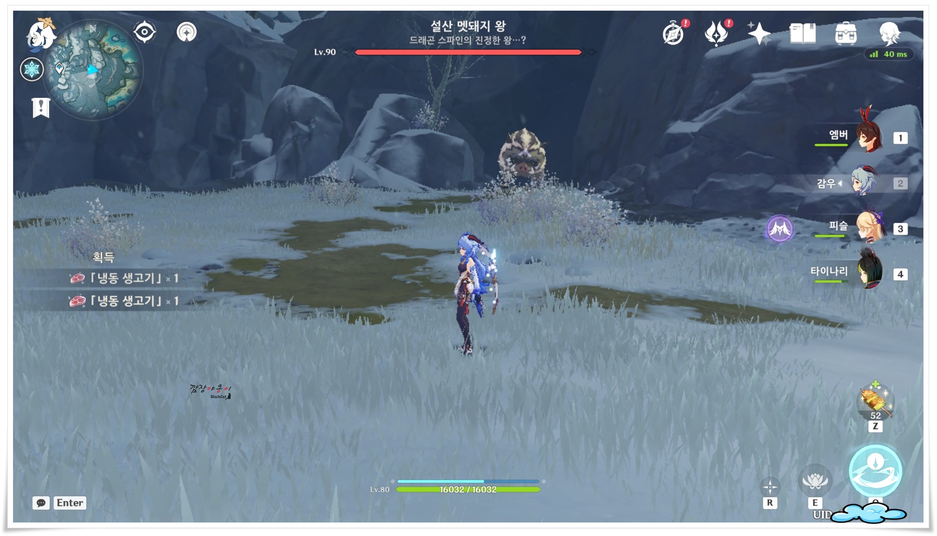 4마리의 작은 멧돼지를 모두 잡고나면 '설산 멧돼지 왕'이라는 칭호를 가진 네임드 보스가 나타날텐데요. 이녀석이 나타나면 이제 히든업적 달성을 위한 기본준비는 완료되었습니다.