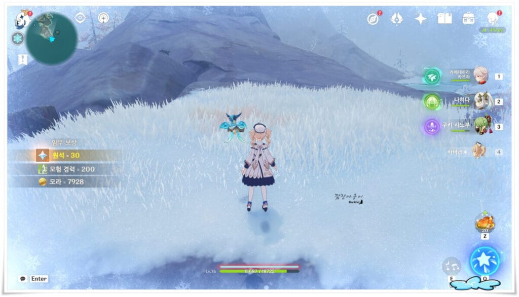 그동안 안하고 넘어간 평판퀘스트 들이 좀 있어서 시간날때 한두개씩 처리하고 있는데 생각보다 더디네요.. 생업(?)이 조금 바쁘다 보니 요즘은 일퀘와 레진만 쓰고 원신을 끄는 일이 많아 못다한 평판퀘는 하는 둥 마는 둥 밀리고 밀리는 중입니다. ㅠㅠ