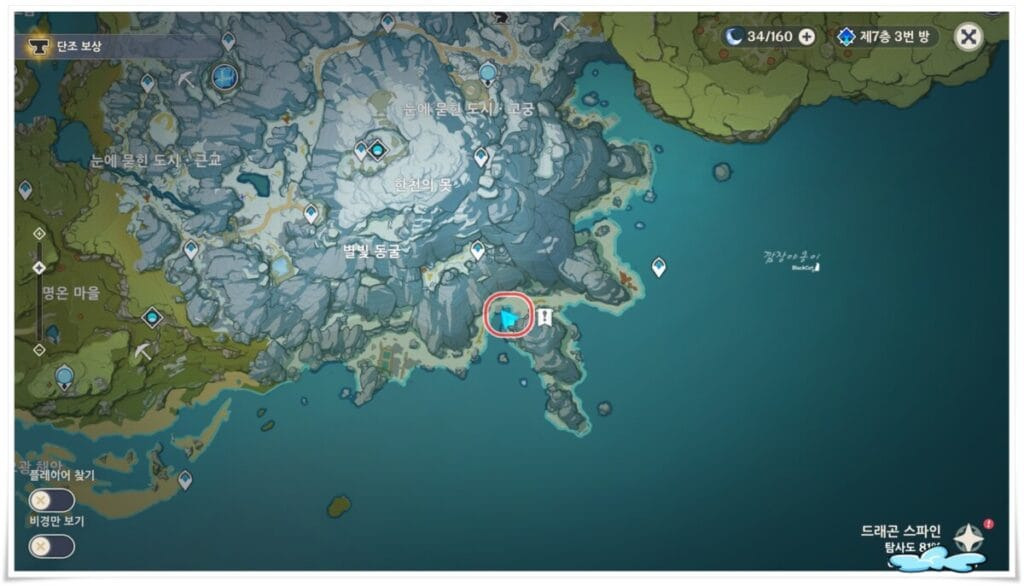 [원신] 드래곤 스파인 해류병 찾기(히로미의 수호)
