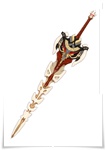 | 재련시 공격력+20/25/30/35/40%. HP가 30% 미만인 적을 명중 시 모든 파티원의 공격력이 40/50/60/70/80% 증가한다. 지속 시간: 12초. 해당 효과는 30초마다 1번 발동한다. 공격력만 따지면 최고인 무기로 송뢰가 없다면 레이저가 사용하기 알맞습니다. |