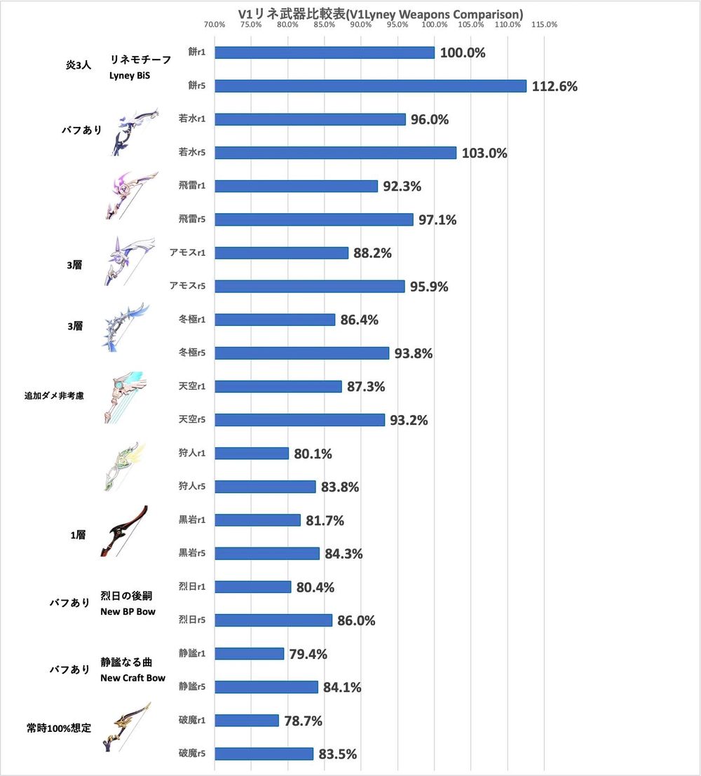 전무와 비교해서 각 무기들간 효율차이입니다. 가지고 있는 무기가 있다면 전무기준 어느 정도의 효율을 보여줄 수 있는지 위 표를 통해 확인해 보시면 됩니다.